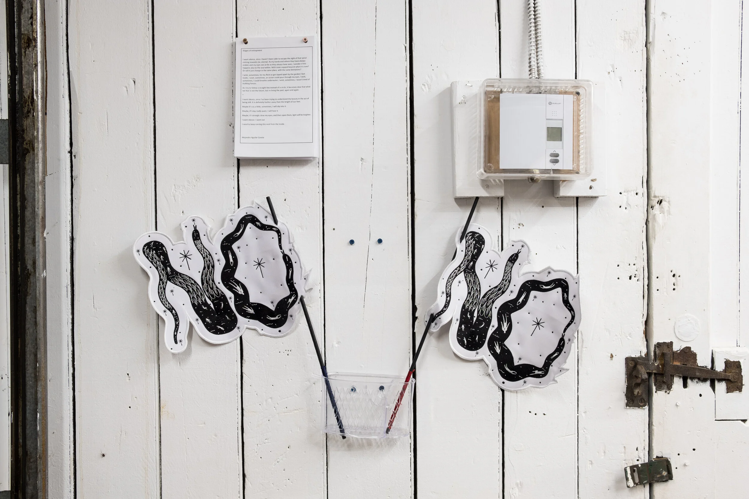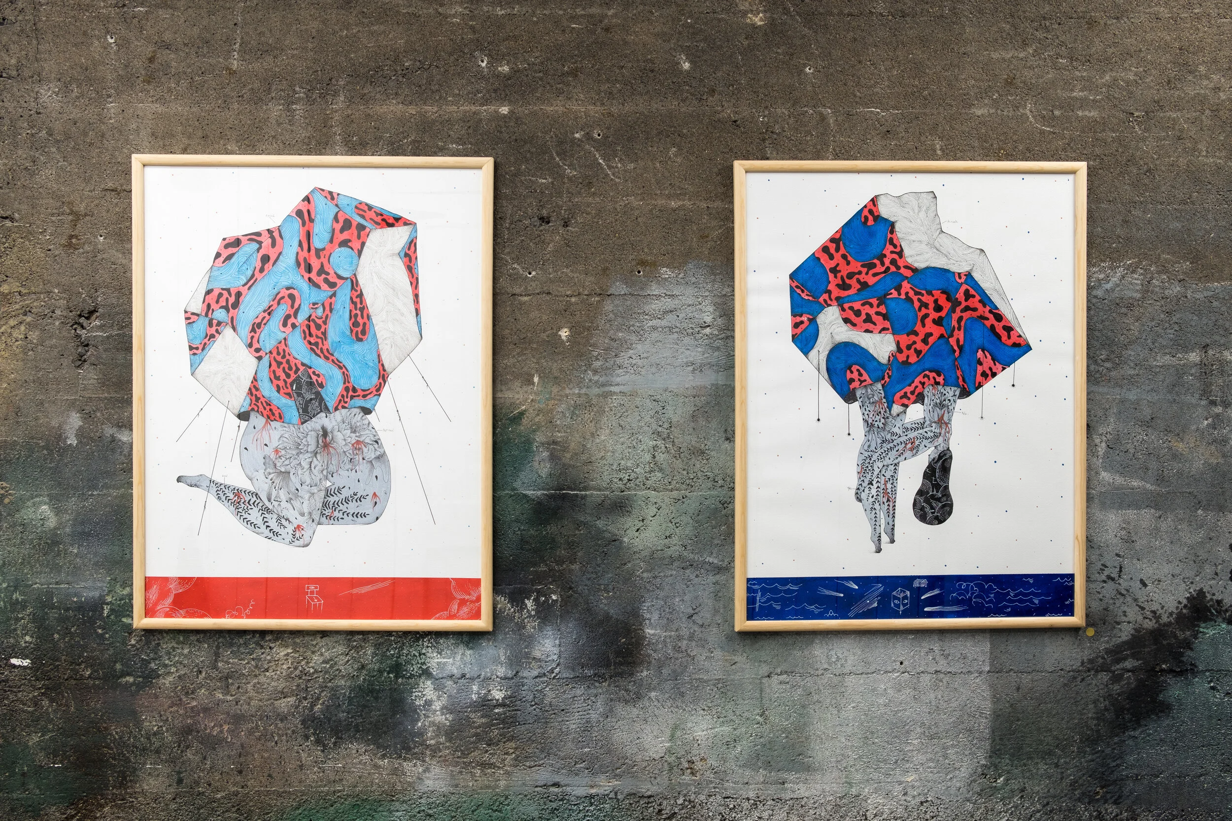 In <Where The Forest Ends> artists Veronique Sunatori and Alejandro Aguilar Canela share candidly their investigations on their roots, and roots in this context should be read as the foundational element from where attitudes, emotions, thoughts and feelings are originated from. In Alejandro’s work, the presence of a relentless need to explore what he calls uncomfortable feelings is brought forth through imagery (language). His drawings reference situations and questions that are most present in his day-to-day psyche, through these actions he gives form to the abstract and develops a language for the intangible. In a parallel sensibility, Veronique uses 3D objects as a handle to explore elements of her past, where the Japanese culture plays a very important role in her understanding of the self. Combining her interest in materials and the concept of the resilience observed specifically in plants, she has developed a body of work that becomes a gust of fresh air in times of global social and political anxiety.