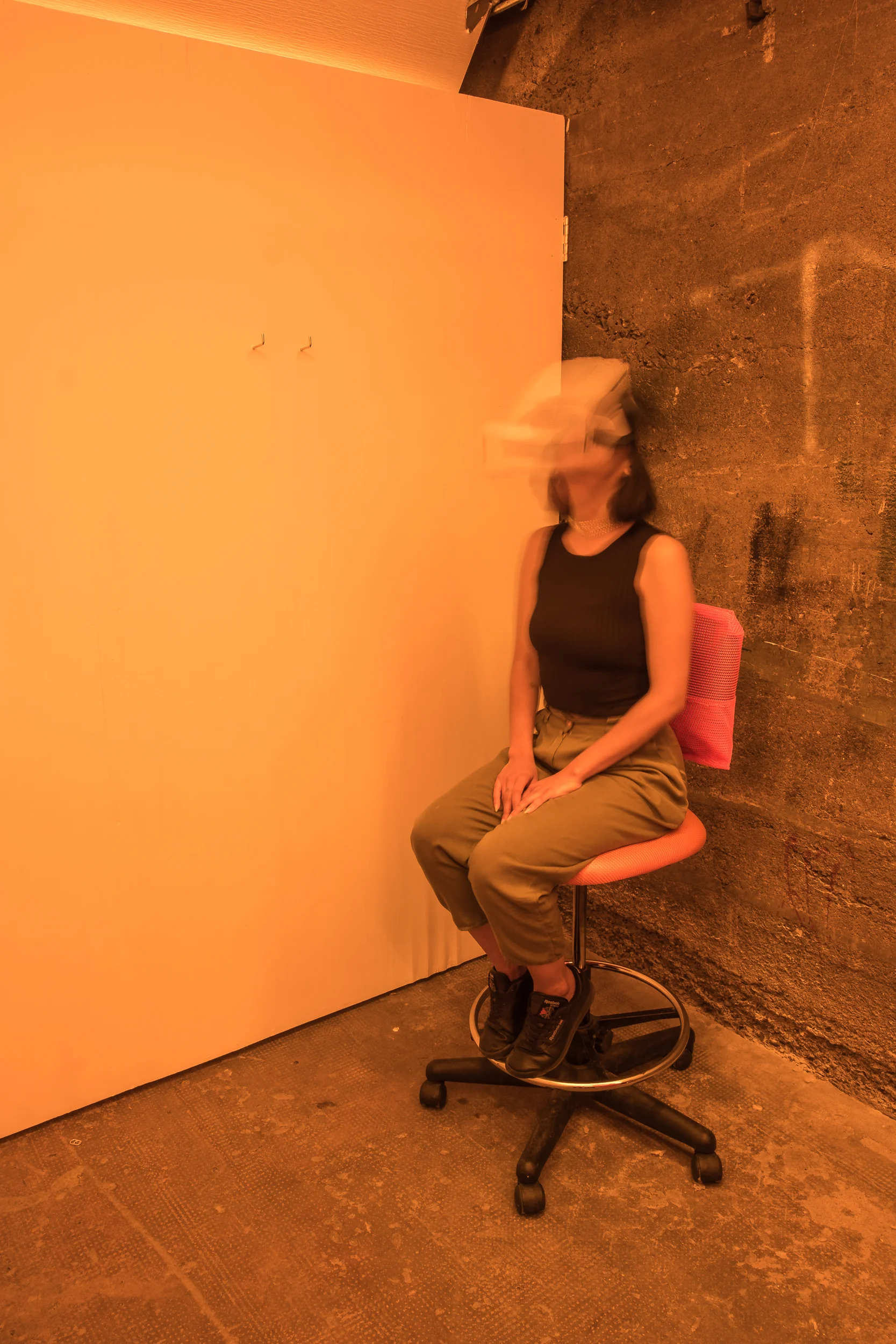 En se basant sur leur expérience d'immigrants au Canada, ces artistes explorent en collaboration les notions de représentation, d'appartenance et d’occupation des espaces. Utilisant une sculpture activée par performance et une œuvre de réalité virtuelle, cette exposition présente un espace de transition dans lequel des corps flottants abstraits sont suspendus dans un état de mouvements répétitifs et de gestes irrésolus.