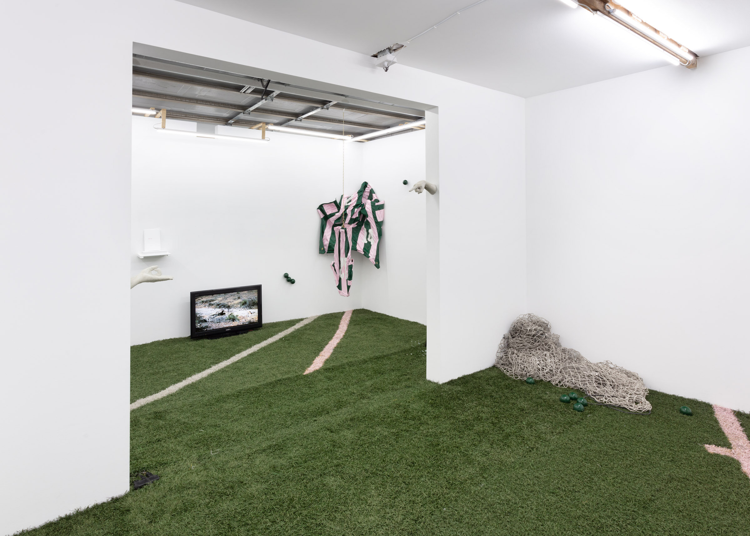 There's a Lot You Can Do With a Hammer is the first duo exhibition/collaboration by Stephanie E. Creaghan and Michelle Furlong, and an interdisciplinary and sensorial installation bringing the sports bar to life, and then to the turf—a circle that feels more like a sphere, found nailed to the wall holding up the net; keep your eyes wide and your ears ready for the Daily news.